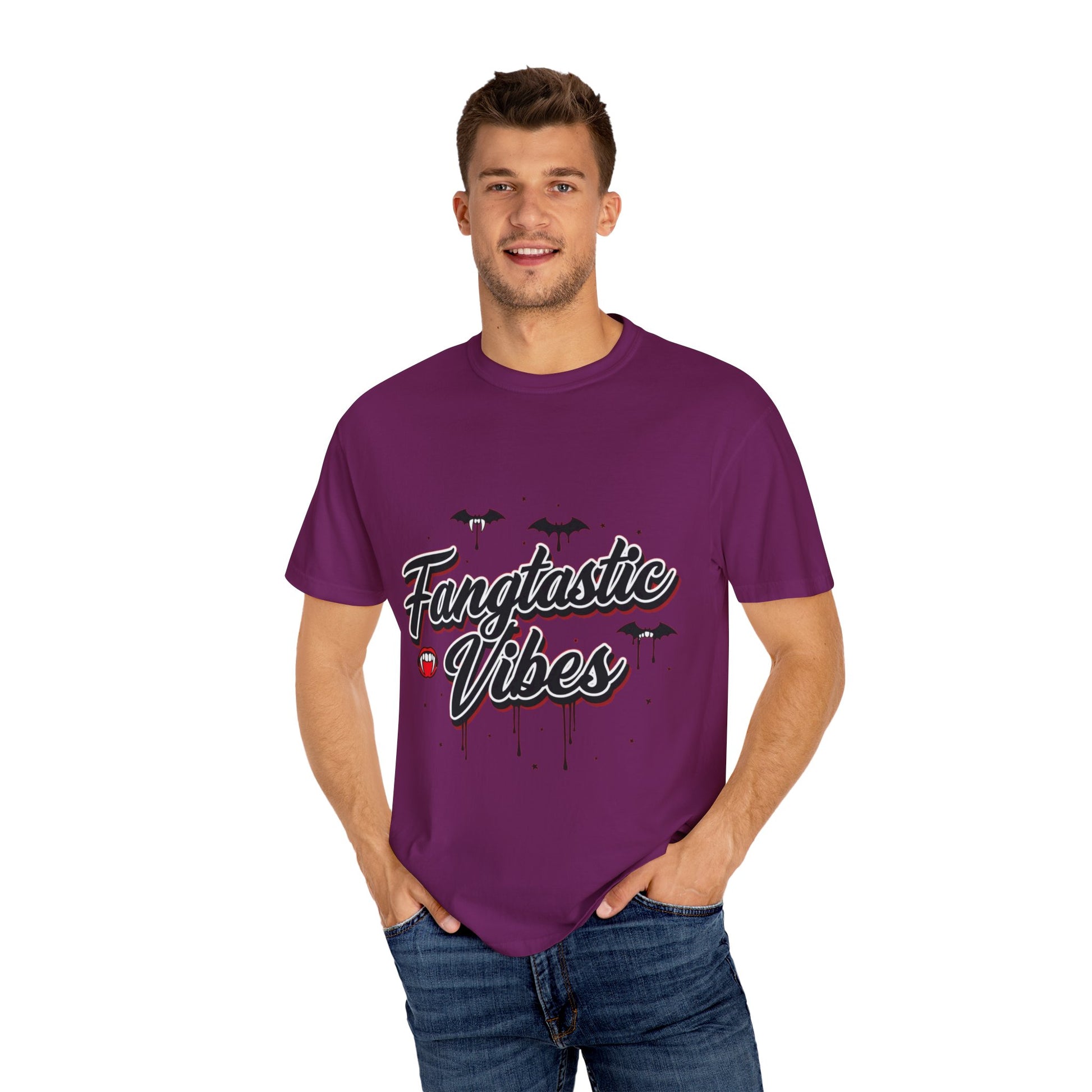 Embrace your inner Halloween spirit with this fun and quirky Unisex Garment-Dyed T-shirt. The playful design showcases "Fangtastic Vibes," making it perfect for casual outings or festive gatherings. Crafted for comfort with a relaxed fit, it's ideal for Halloween parties, spooky movie nights, or just adding a touch of whimsy to your everyday look. Whether you're dressing up for trick-or-treating or just celebrating the autumn season, this tee is a must-have for anyone who loves a bit of fun in their wardrobe. It appeals to all ages, particularly teens and adults who appreciate clever designs that lighten the mood and celebrate the playful side of life.