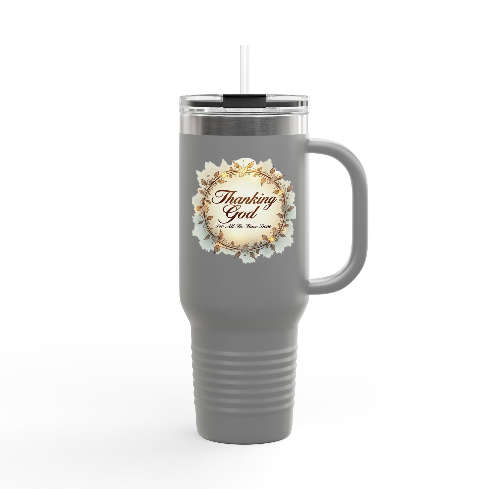 "Thanking God" Gratitude Insulated Travel Mug | 40oz Coffee Cup